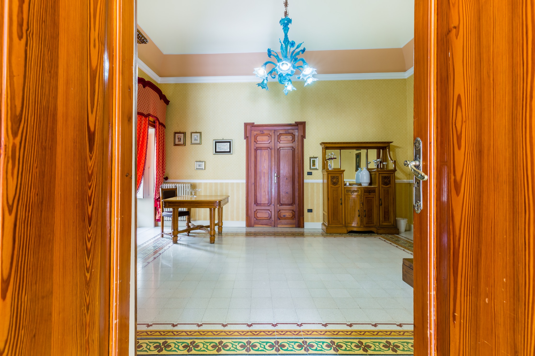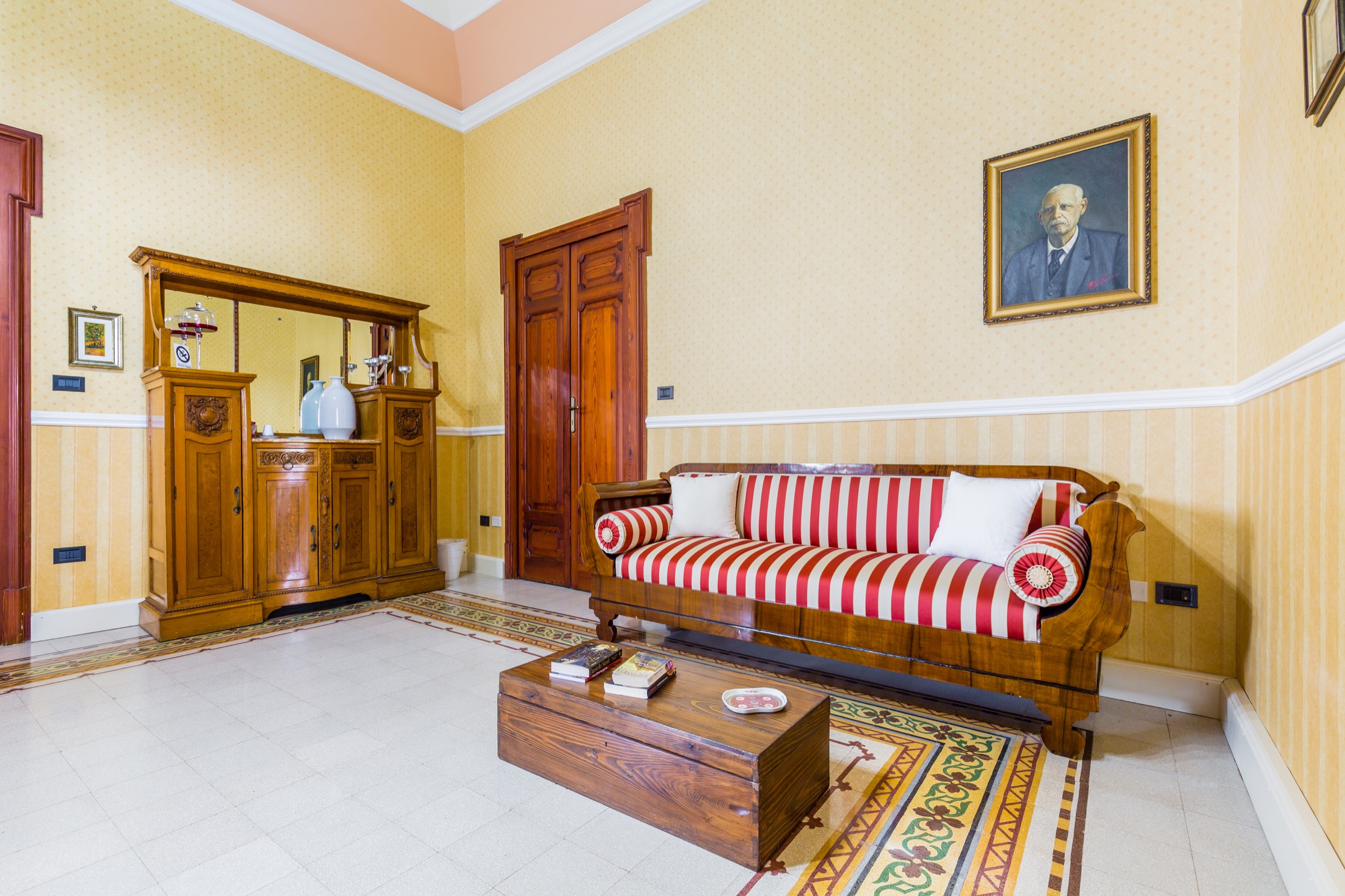 Sole è la camera più grande del palazzo, circa 40 mq con mobili, decorazioni originali come il candelabro di cristalli al soffitto, al centro della camera.