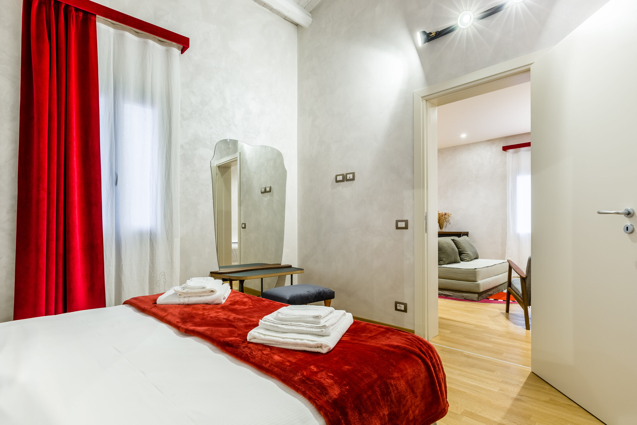 La camera da letto può ospitare comodamente una coppia. Per eventuali altri ospiti è disponibile il sofà della zona living che diventa un comodo letto matrimoniale.