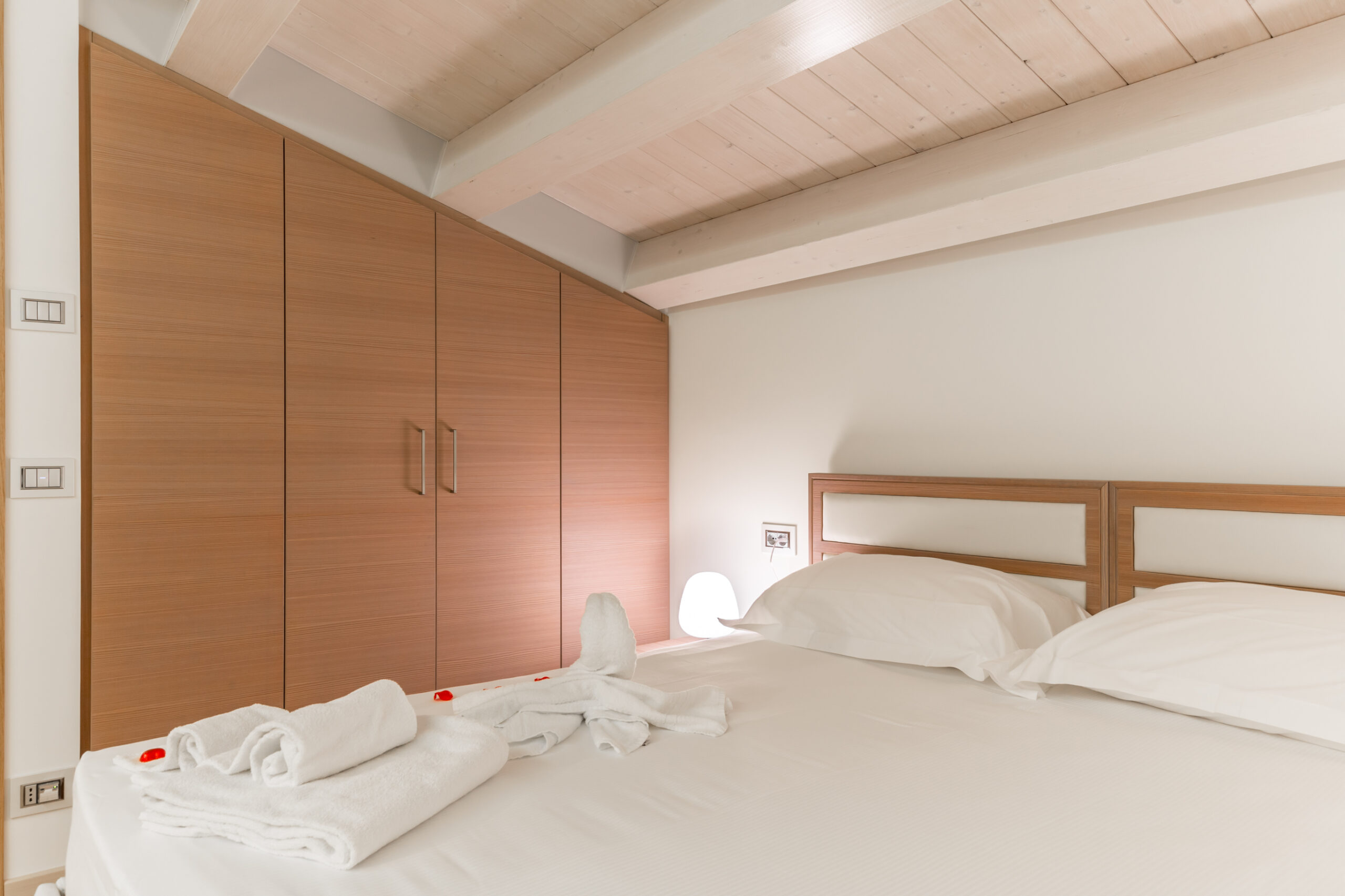 Due le camere da letto, entrambe matrimoniali, di cui una con letti separabili e capiente cabina armadio. Il bagno è molto accogliente e dotato di una bellissima doccia emozionale cromoterapica.