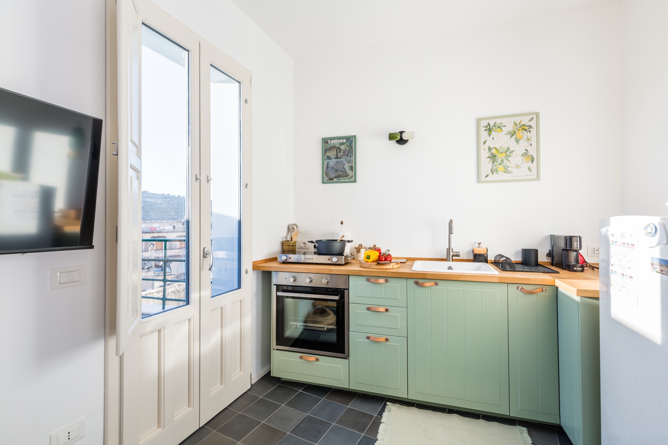 Distribuita su tre livelli e appena ristrutturata, la casa accoglie gli ospiti in ambienti curati nei minimi dettagli, dove materiali ricercati e arredi di design dialogano con l’anima autentica del centro storico.